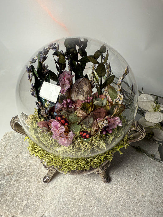 Cithaerias Pyropina Butterfly - Antique Sugar Jar Dome